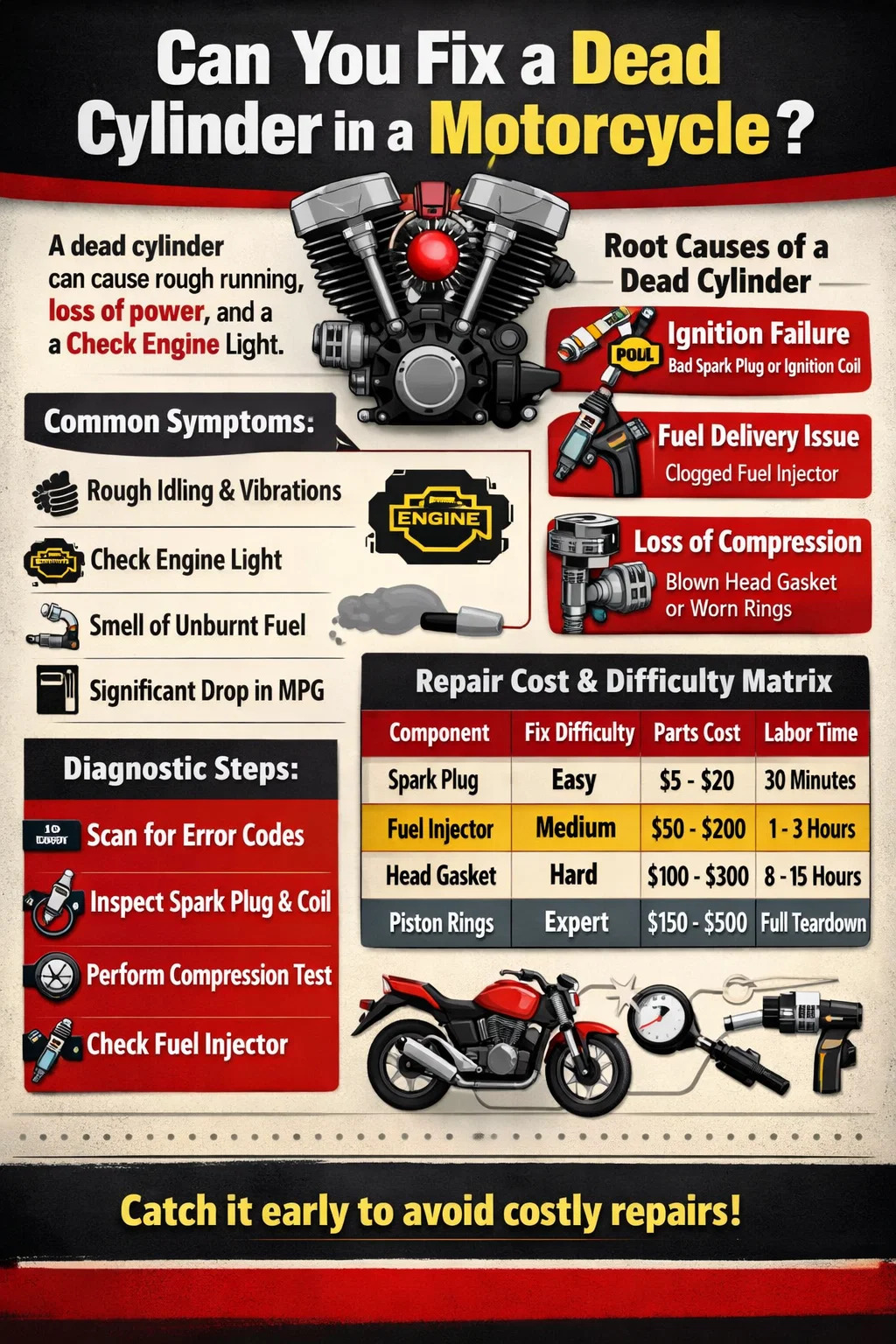 A "dead cylinder" is not necessarily a death sentence for your engine, but the complexity of the fix depends entirely on what caused the failure. Yes, a dead cylinder can almost always be fixed, ranging from a simple 10-minute spark plug swap to a complete engine teardown involving machining the engine block. The path to recovery depends on whether the issue is "external" (fuel or spark) or "internal" (mechanical failure and compression loss).