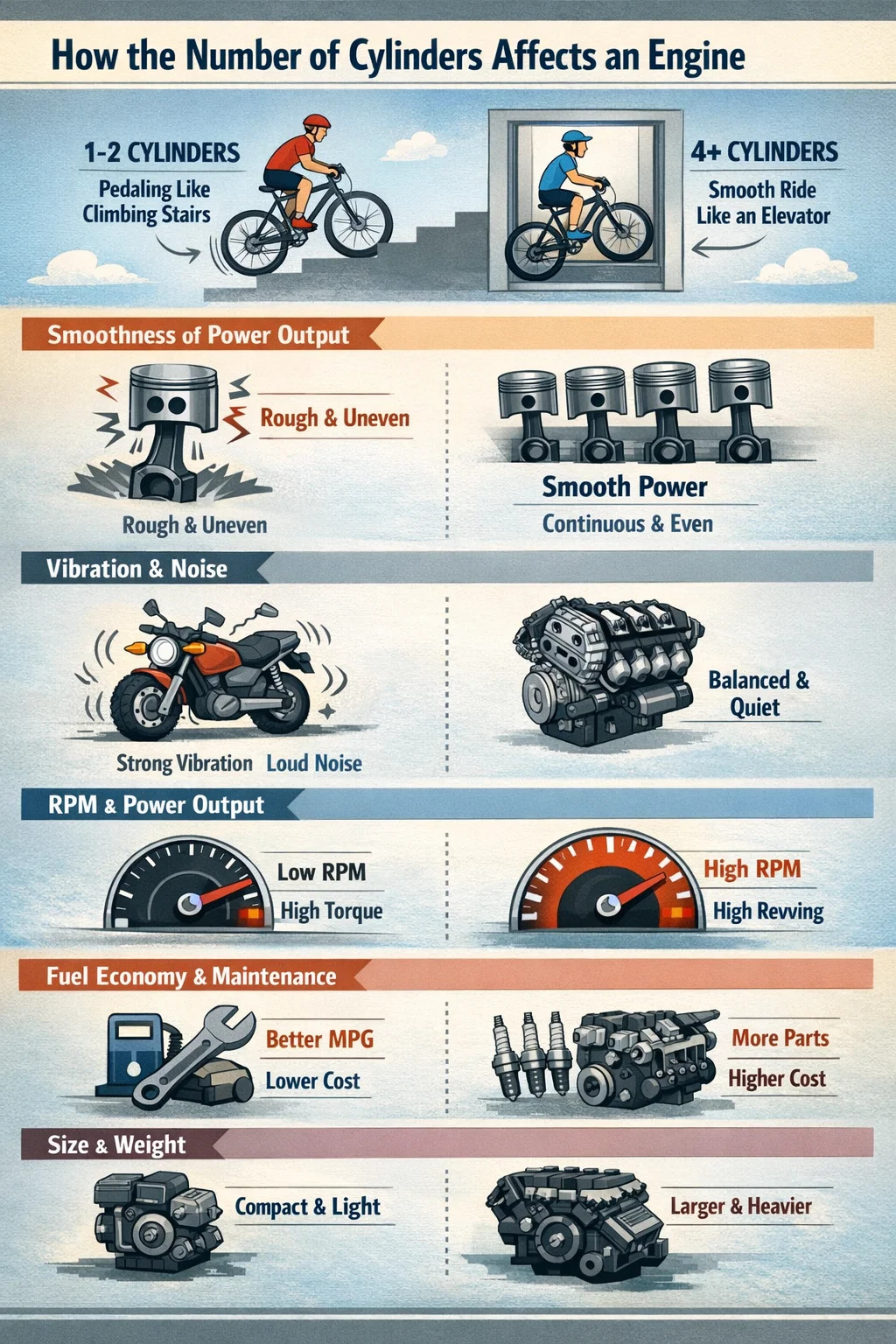 Here's how the number of cylinders specifically affects the engine: