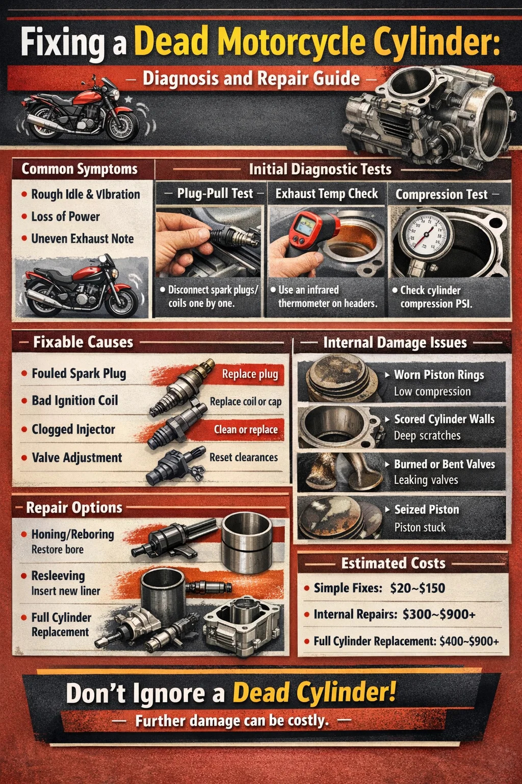 Before writing off the engine, you need to understand exactly what is wrong with that motorcycle cylinder. This guide walks through every major cause of a dead cylinder, how to identify which one you are dealing with, and what the realistic fix looks like for each scenario.