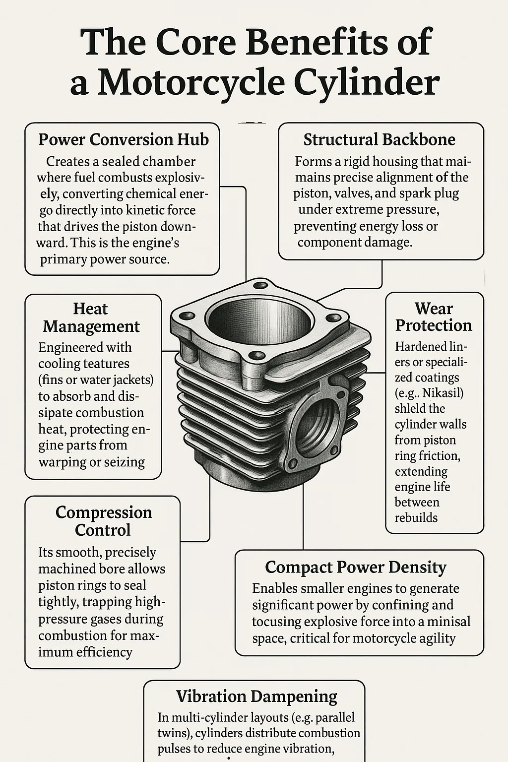 Here are the core benefits of a motorcycle cylinder, explained practically: