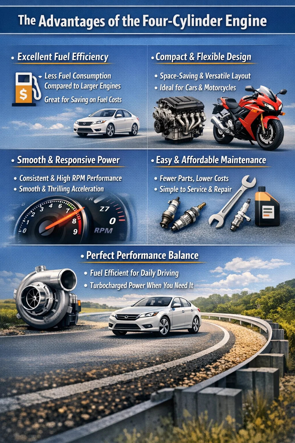 Here are some of the core reasons why the four-cylinder engine is so popular: